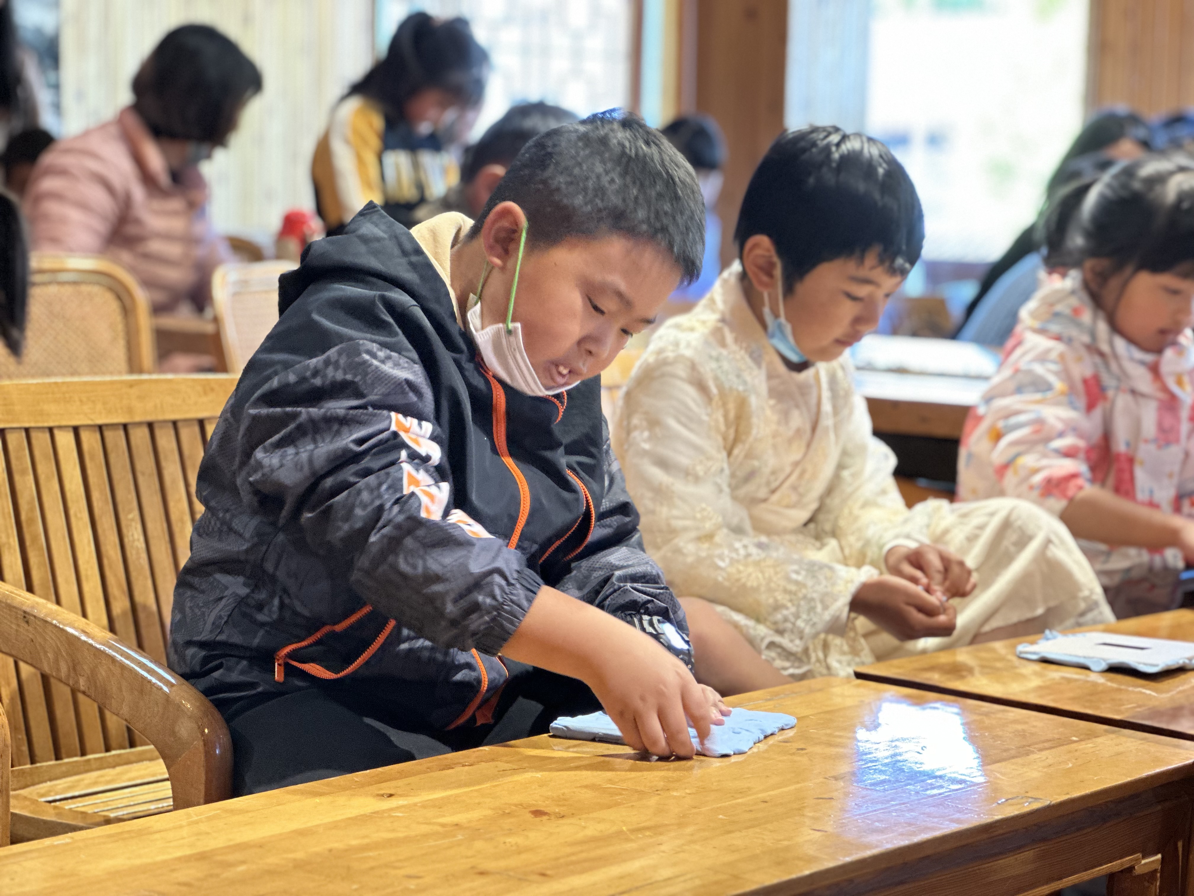 116日,以小学阶段就读的教职工家庭为主,通过观看舞台剧《青苔原上的波奇国》,以故事为蓝本,引导孩子们进行童话接龙,在老师的引导下,就算是平时不擅长编故事的孩子都能创作出有趣的故事。之后,家长们还和孩子一起制作了波奇国冰箱贴。