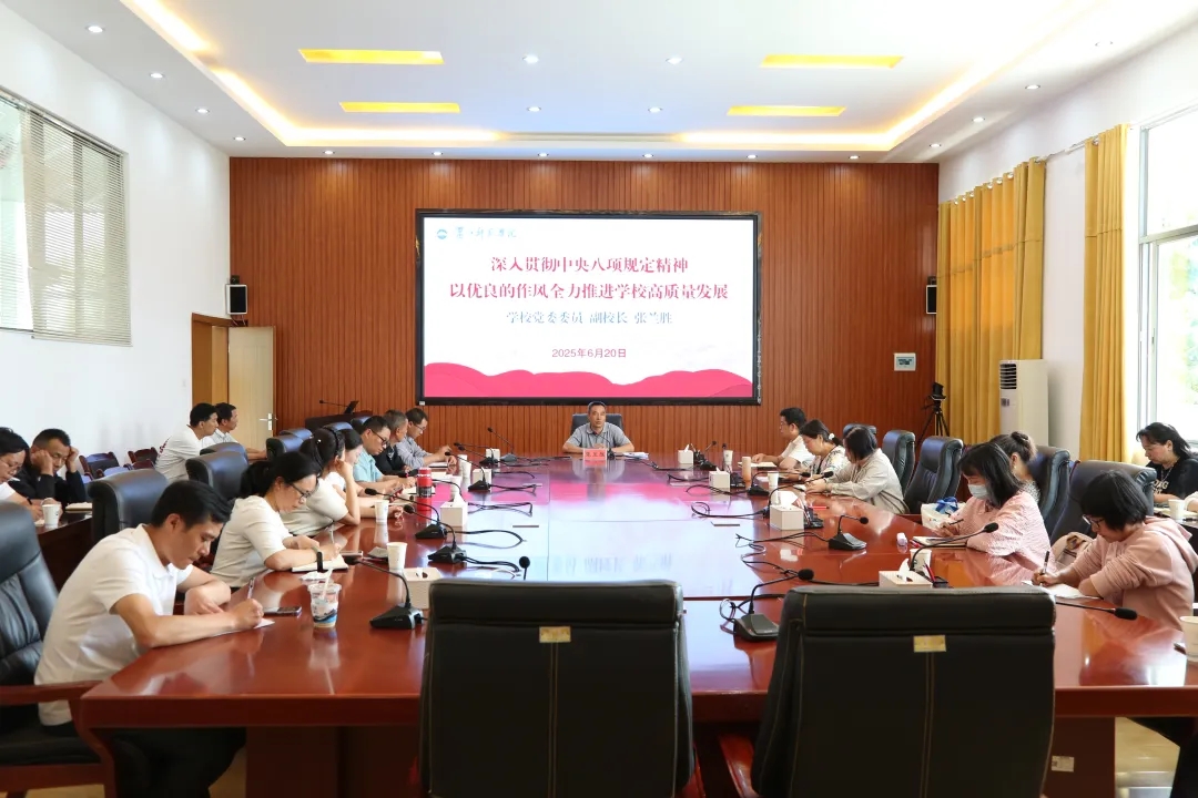 党委委员、副校长张兰胜结合科研经费规范使用、师德师风建设等学校实际工作,要求各党支部将中央八项规定精神落到实处。他强调,要以党课学习为契机,解决“违规饮酒、违规吃喝”等作风问题,发挥专业导师在育人中的关键作用,通过教育方式革新、职称评审改革等举措,将作风建设成果转化为办学治校效能。
