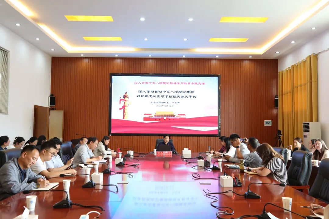 为扎实推进深入贯彻中央八项规定精神学习教育,强化党员干部初心使命意识,学校党委班子成员、各级党组织书记分别讲授党课。6月中旬,学校党委书记和校长讲授了专题党课。