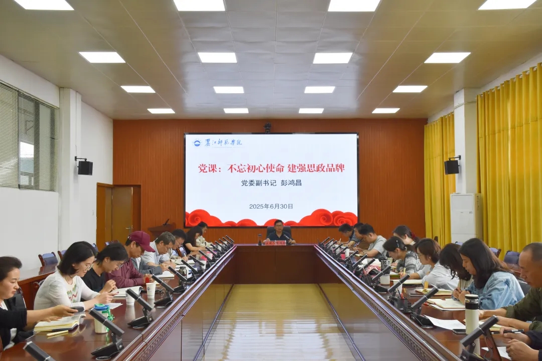 校党委副书记彭鸿昌围绕“不忘初心使命 建强思政品牌”主题,深刻阐释共产党人初心使命的核心内涵。在谈及思政品牌建设时,彭鸿昌重点介绍了学校以张桂梅先进事迹为核心的思政教育体系,强调要推动思政教育与专业培养深度融合。