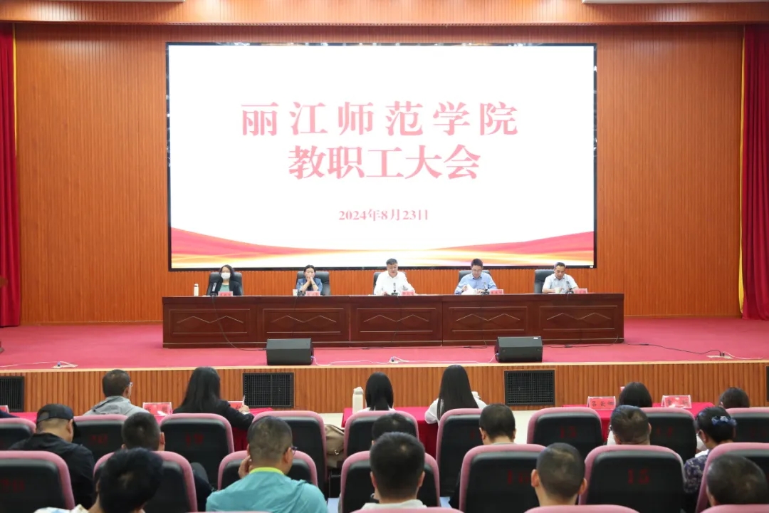 他指出,今年,学校已经实现了升本目标,在进入新起点,开启新征程,承担新使命、接续新奋斗的进程中,全校师生要做好“五个力”。一是把准历史方位稳定力。准确把握学校发展的历史方位,坚持扎根丽江、立足滇西北、服务云南、面向全国、融入一带一路的办学定位不动摇,明确建设教师教育特色鲜明的高水平地方应用型大学的办学目标。二是深化改革创新增动力。全面改革增强动力,建立适应本科办学要求的制度体系,提高学校治理体系和治理能力现代化水平;推进创新激发活力,牢固树立本科意识、本科思维、本科理念、本科追求、本科目标、本科标准、本科制度等。三是聚焦一流标准强能力。学校高质量发展必须对标一流学科、一流专业、一流课程标准,以更高的站位、更广的视野、更大的格局、更宽的胸怀,更加主动地识变应变求变,更加自觉地改变思维方式和行为方式,更加积极地提高学习能力、教学能力、科研能力、管理能力、服务能力、宣传展示能力,全面提升人才培养质量。四是提升精神气质展魅力。学校精神气质主要是一所学校独特的文化特质、文化符号和文化底蕴。要秉承“德高业实、丽泽三江”的校训,弘扬和践行“崇德尚学、求是创新”的校风、“学为人师、行为世范”的教风、“博学弘德、励志笃行”的学风,全面推动团结丽师、质量丽师、品牌丽师、活力丽师、文明丽师建设。五是优化党建思政聚合力。学校发展需要众志成城、需要全体参与、需要齐心协力。要以高质量思政工作统一思想、统一意志、统一行动,形成“心往一处想、劲往一处使”的良好氛围,凝聚高质量发展强大合力。