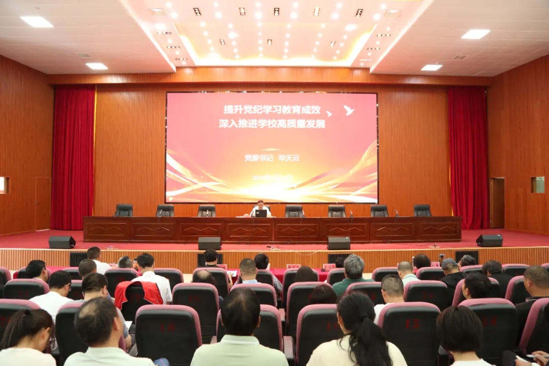 党委书记毕天云于6月14日为全体党员干部讲授题为“提升党纪学习教育成效 深入推进学校高质量发展”的纪律党课。